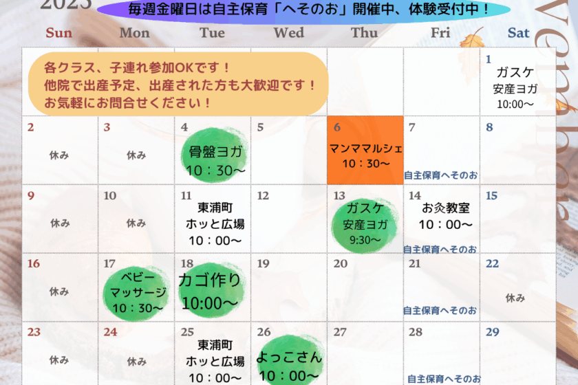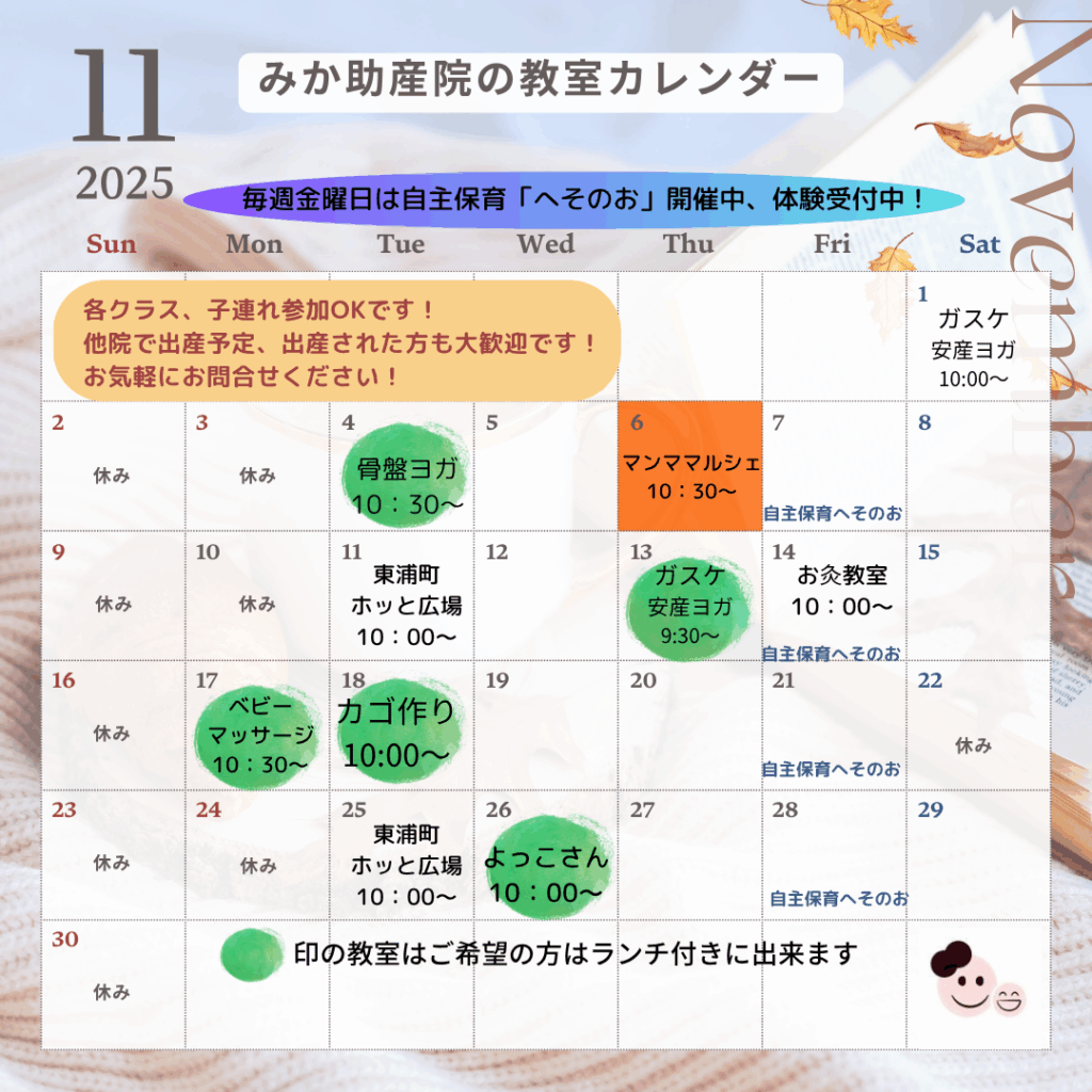 11月の教室・イベント更新